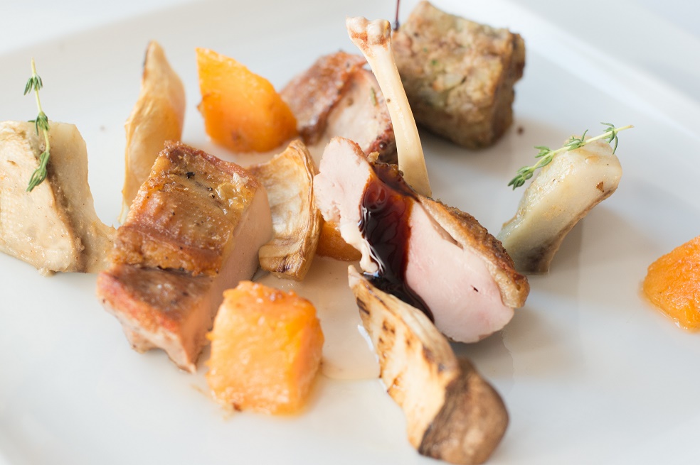 Como sabores principais, o Astória apostou no javali e no faisão. Começando pelo Javali, esta é uma carne caracterizada pelo elevado valor nutricional e sabores fortes. No Astória, é confitada e servida com alheira e um mix de cogumelos do bosque, com um apontamento de molho de mirtilo. Já a carne do Faisão, uma ave de beleza rara, é mais leve e delicada, aqui servida com especiarias, um guisado de alcachofra e abóbora, cogumelo eringii grelhado e creme de avelã.